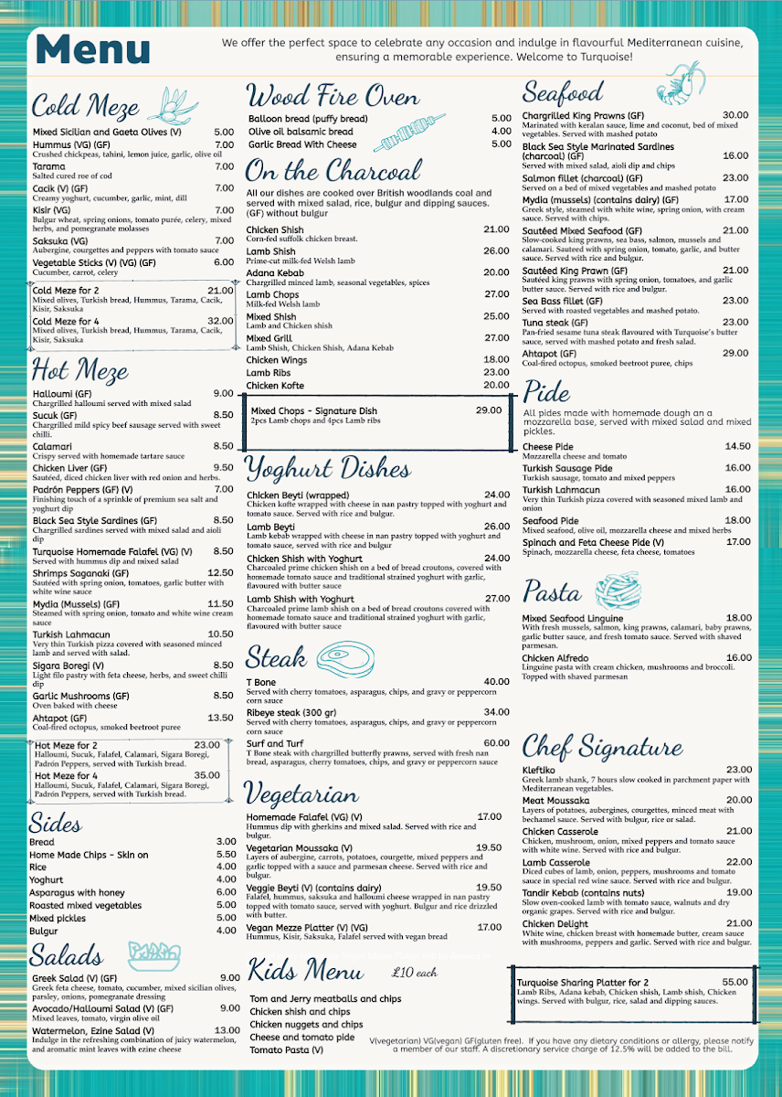 Introducing "Turquoise," a vibrant culinary jewel in Weybridge that captures the essence of Mediterranean dining. Located at 44 Church St, this restaurant invites guests into a warm atmosphere filled with the fragrant allure of bold flavors.